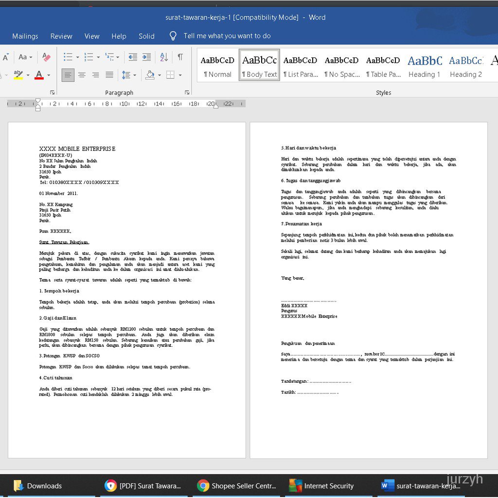Surat Tawaran Kerja 2019 Letter 7saudara Com