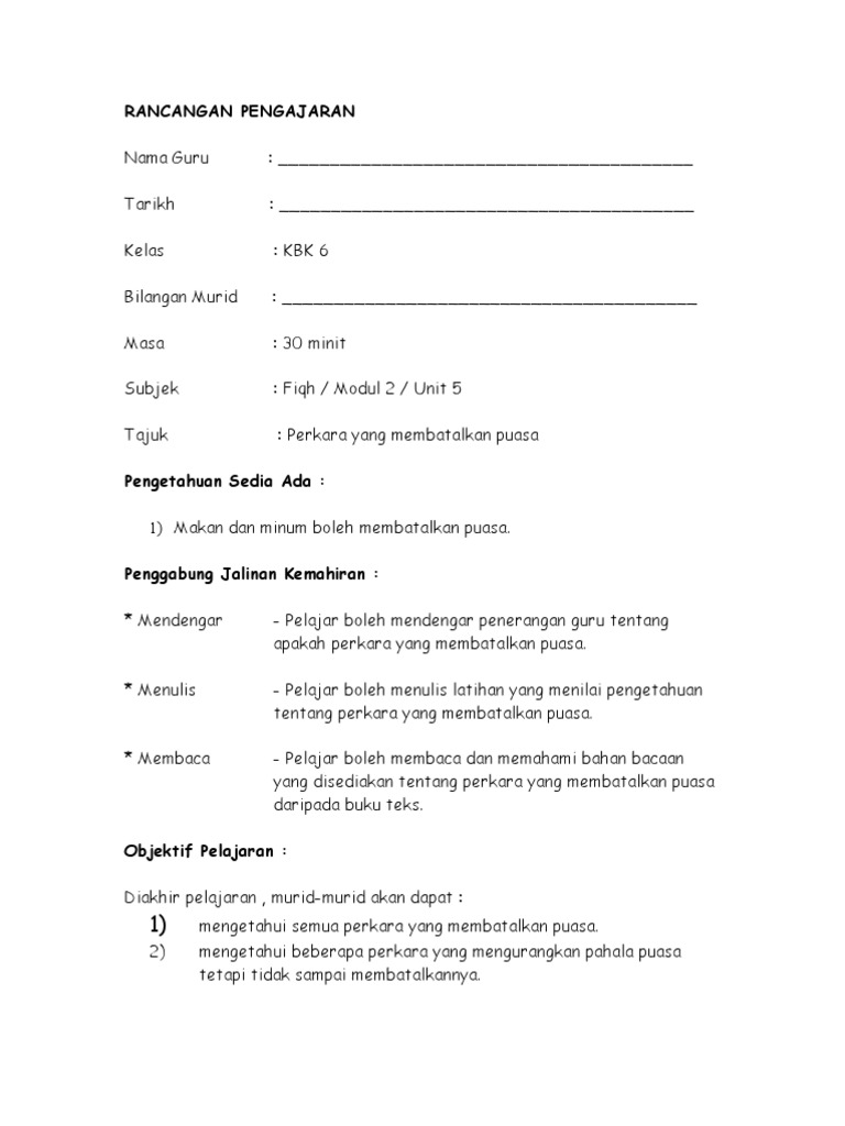 Rp Fiqeh Kbk 6 Perkara Yang Membatalkan Puasa Pdf